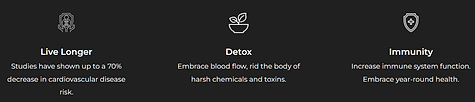 Detoxification. Embrace increased blood flow, rid the body of harsh chemicals and toxins.